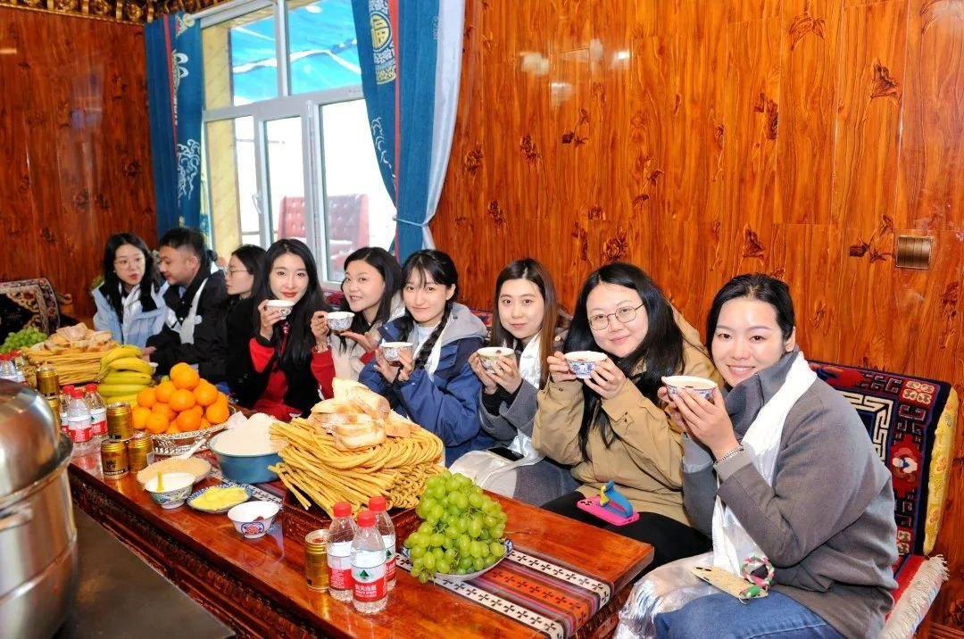 帶著對(duì)小原羚越來(lái)越好的美好祝愿,藝術(shù)大篷車(chē)漸漸駛離了青海湖,在隊(duì)伍停車(chē)拍攝草原上成群結(jié)隊(duì)的牦牛、馬兒和小羊的時(shí)候,熱情的牧民夫婦聽(tīng)說(shuō)我們從北京到杭州再到青海,便盛情邀請(qǐng)大家去家中小坐稍事休整。
