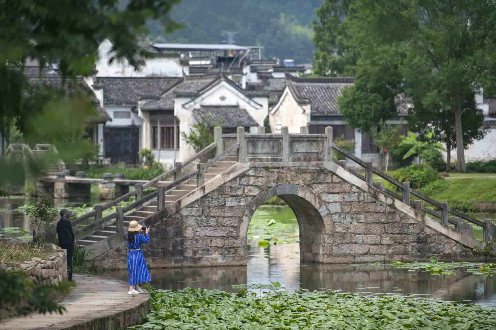 2023年5月26日,安徽黃山,徽州區(qū)呈坎村綠樹(shù)成蔭碧水蕩漾。視覺(jué)中國(guó)