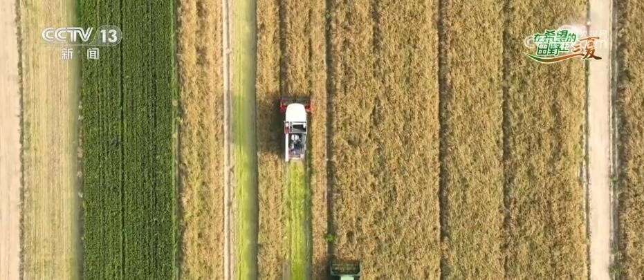 總臺記者 楊海靈:我現(xiàn)在來到了衡水市安平縣,在經(jīng)歷了油菜花明艷的金黃之后,整個田地披上了一層淡淡的黃色。從芳香變?yōu)楣麑?shí),這里的萬畝油菜籽迎來大面積收獲。很多人見過油菜花,對于油菜籽可能并不熟悉。我手里拿的就是正在收獲的油菜籽,顆粒就在這細(xì)長的豆莢當(dāng)中。農(nóng)民們豐收的喜悅就在這一鼓作氣的干勁里,趁著天氣晴好,聯(lián)合收割機(jī)來回穿梭,飽滿的油菜豆莢連著秸稈被收進(jìn)機(jī)器,很快,細(xì)細(xì)密密的油菜籽就被收入機(jī)囊當(dāng)中。