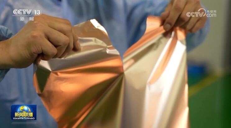 在這家國(guó)家級(jí)專精特新企業(yè)的車間里,生產(chǎn)的依舊是以銅為基礎(chǔ)的銅箔,但是質(zhì)感卻像紙巾一樣柔軟,甚至可以輕易撕開(kāi)。這里面最薄的只有3.5微米,達(dá)到了世界先進(jìn)水平。產(chǎn)品主要用在新能源汽車的動(dòng)力電池上,企業(yè)的定位也變成了鋰電新材料產(chǎn)業(yè)。
