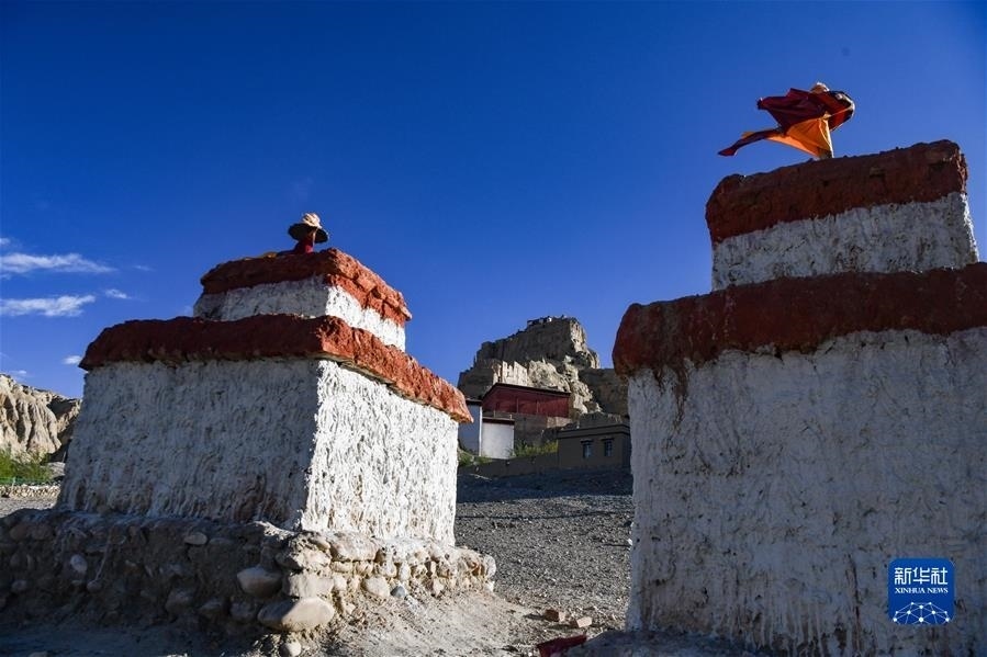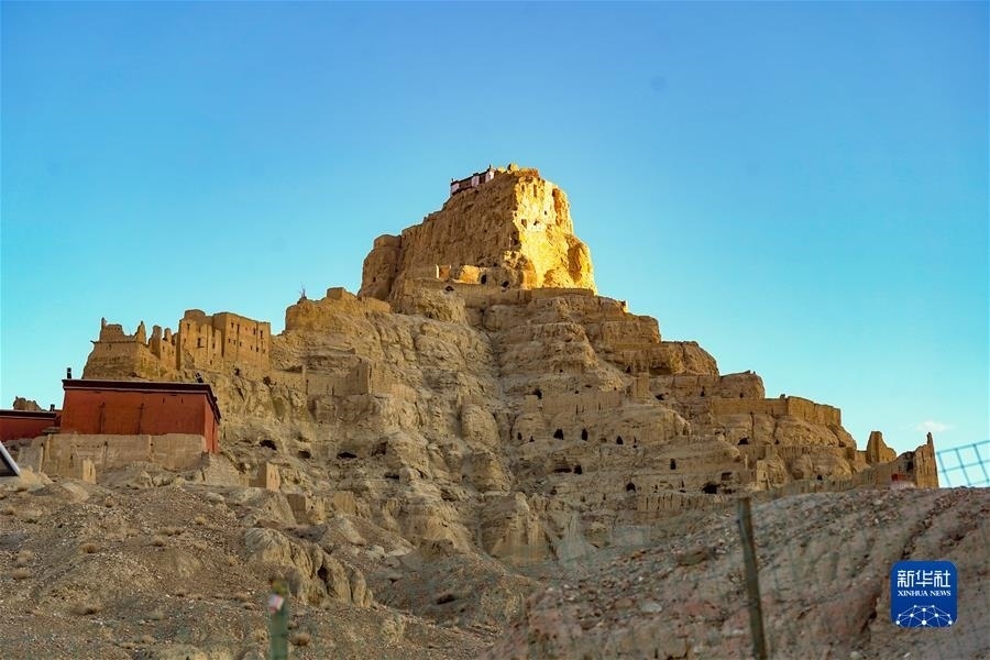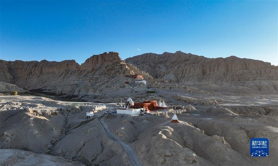 5月26日,黃昏時分的古格王國遺址(無人機(jī)照片)。
