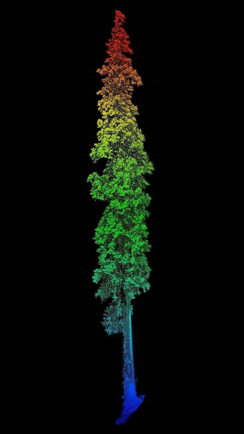 通過無人機與背包激光雷達相結合,對西藏柏木巨樹聚生區(qū)域進行精準測量,得到了巨樹群的精準三維點云模型。經過高度測量,發(fā)現(xiàn)其中一棵西藏柏木高達102.3米,該發(fā)現(xiàn)同時刷新了中國與亞洲的最高樹紀錄,躋身按樹種排名的世界最高樹列表,位列第二。研究團隊獲取了該樹的精細三維點云數(shù)據,測量其胸徑為293厘米,并采用無人機攝影的方式獲取了巨樹等身照。
