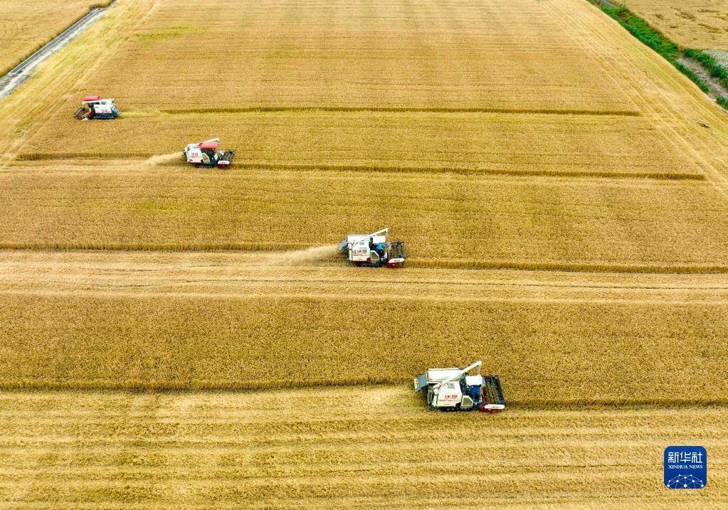 近日,江蘇省泰州市255萬畝小麥陸續(xù)進(jìn)入收割期,當(dāng)?shù)剞r(nóng)民搶抓晴好天氣加緊收割。農(nóng)機(jī)在田間穿梭,構(gòu)成了一幅美麗的豐收圖畫。