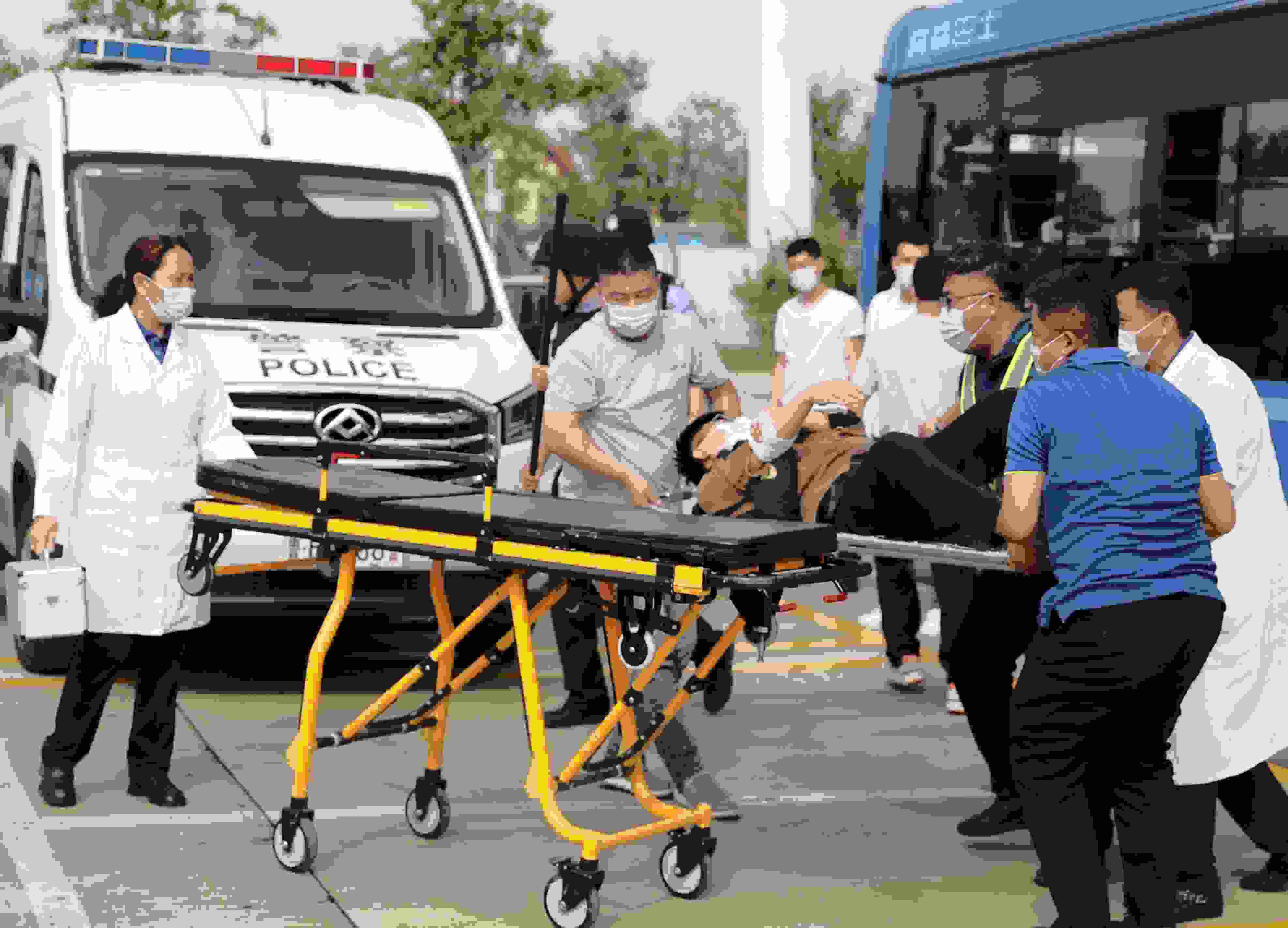 當(dāng)日,青島真情巴士集團(tuán)聯(lián)合青島西海岸新區(qū)治安、消防、應(yīng)急、環(huán)保、交警等部門在金沙灘啤酒城開(kāi)展道路交通事故及突發(fā)事件應(yīng)急演練,此次演練旨在進(jìn)一步完善青島西海岸新區(qū)道路交通應(yīng)急救援體系,提高道路交通應(yīng)急處置能力。 (張進(jìn)剛 攝)