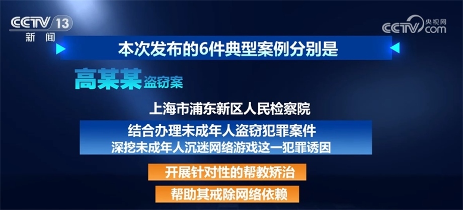 高某某盜竊案。上海市浦東新區(qū)人民檢察院結(jié)合辦理未成年人盜竊犯罪案件,深挖未成年人沉迷網(wǎng)絡(luò)游戲這一犯罪誘因,開展針對性的幫教矯治,幫助其戒除網(wǎng)絡(luò)依賴。
