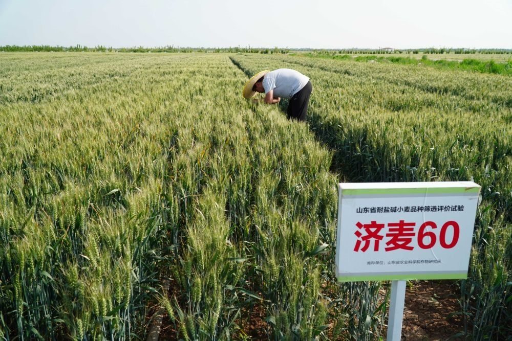“這是山東省農(nóng)業(yè)科學(xué)院作物所小麥遺傳育種團(tuán)隊專門針對旱地、鹽堿地培育的新品種?!鄙綎|省農(nóng)業(yè)科學(xué)院作物所研究員曹新有說,2022年夏收時測產(chǎn),在土壤含鹽量3.75‰的土地上,“濟(jì)麥60”平均畝產(chǎn)460.98公斤,創(chuàng)鹽堿地小麥高產(chǎn)紀(jì)錄。