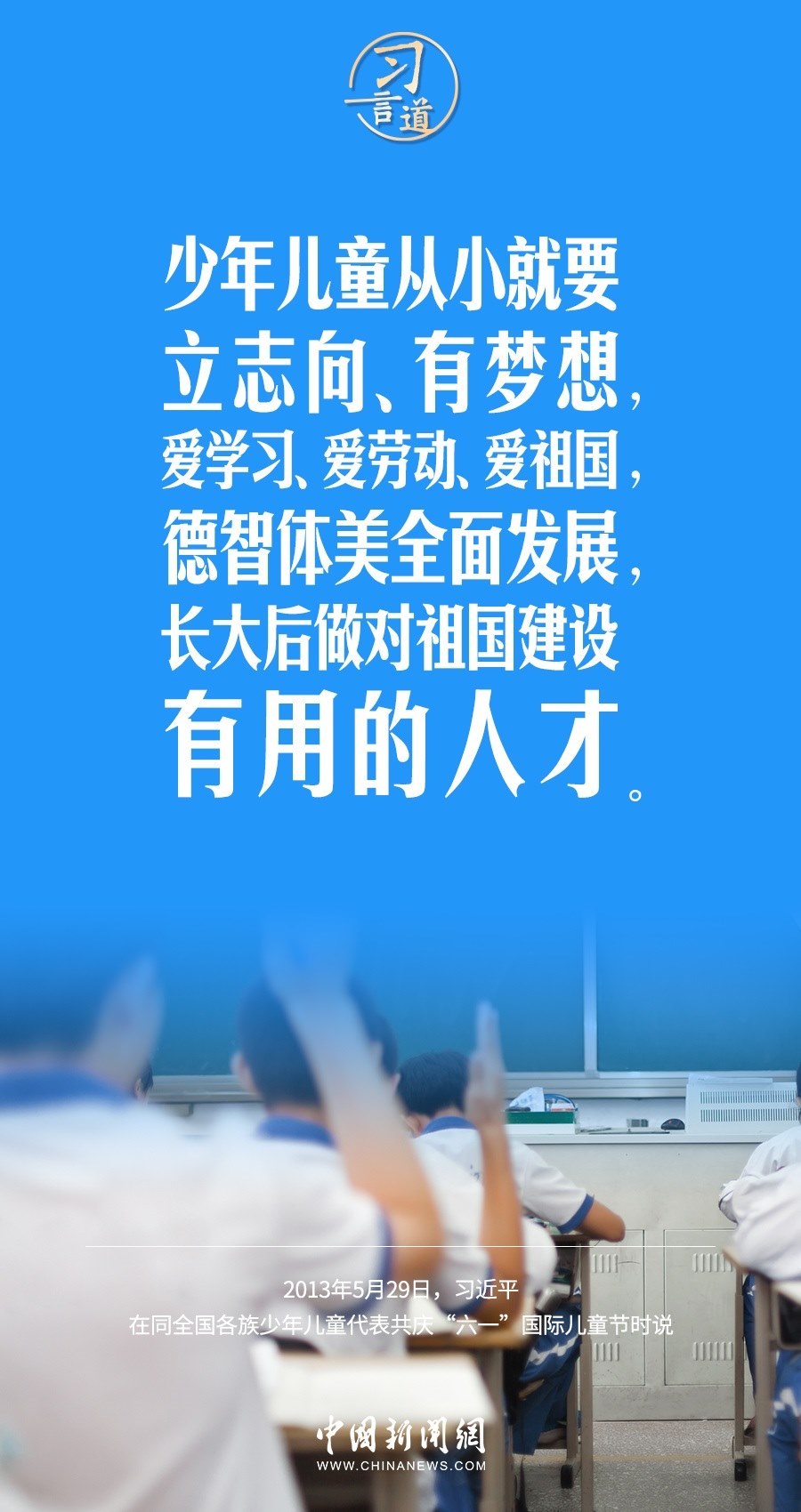 “六一”國際兒童節(jié)到了。習近平總書記高度重視少年兒童的健康成長,多次寄語少年兒童,希望他們有夢想、愛學習,成為對祖國建設有用的人才。