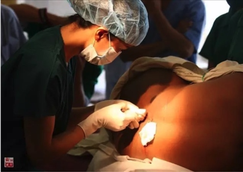2010年11月12日,“和平方舟”號(hào)醫(yī)院船麻醉師盛睿芳對(duì)沁的母親實(shí)施麻醉,準(zhǔn)備剖腹產(chǎn)。新華社記者琚振華攝