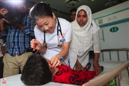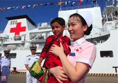 2013年,“和平方舟”號(hào)醫(yī)院船再次來到孟加拉國(guó)。上萬民眾自發(fā)涌向中國(guó)醫(yī)院船,最高單日門診1700余人次。3歲的阿里法·沁健康么?中國(guó)軍醫(yī)牽掛著她。她家住在偏僻農(nóng)村,中國(guó)軍醫(yī)設(shè)法找到了她,邀請(qǐng)她登上“和平方舟”號(hào)醫(yī)院船體檢。