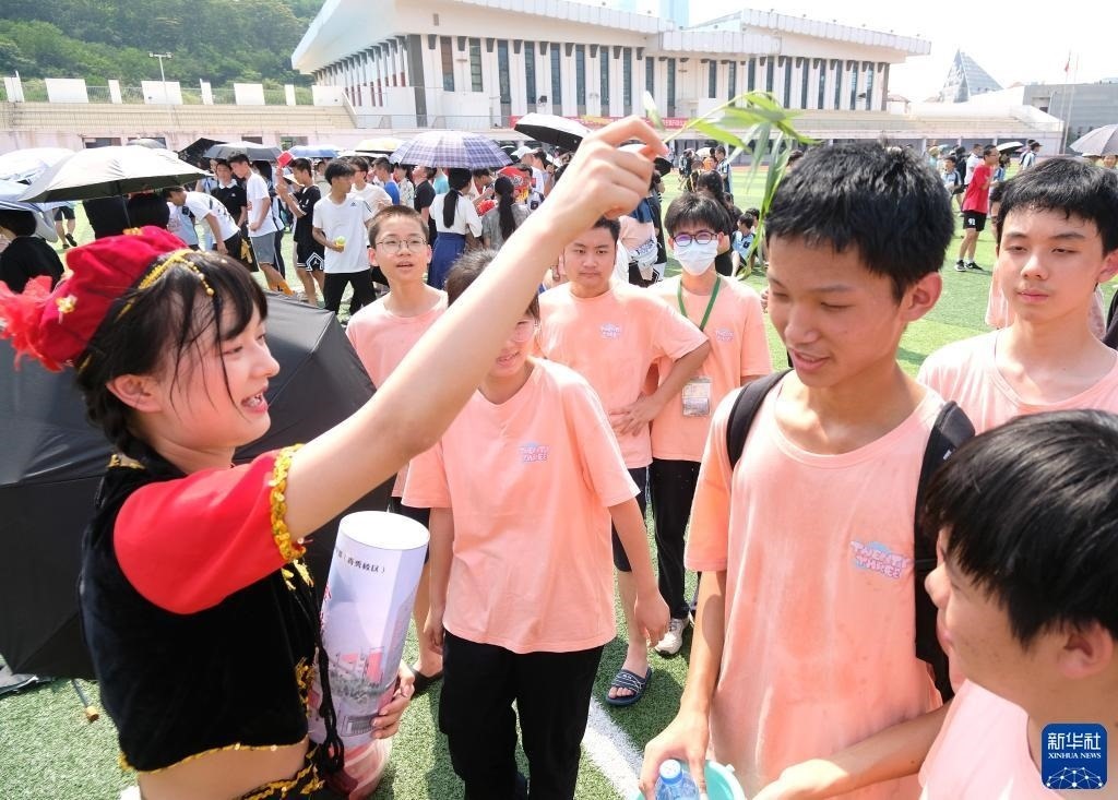 6月2日,學(xué)生們享受潑水活動帶來的快樂(無人機(jī)照片)。