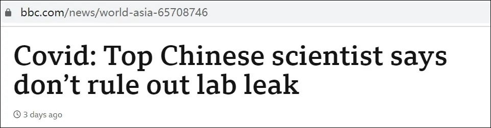 BBC標題中所說的中國頂級科學(xué)家是中國科學(xué)院院士、中國疾病預(yù)防控制中心原主任高福。該報道稱,在“接受”BBC廣播四頻道播客《發(fā)熱:尋找新冠病毒的起源》“采訪”時,高教授說:“你總是可以懷疑任何事情。這是科學(xué)。不要排除任何可能性?!?/p>
