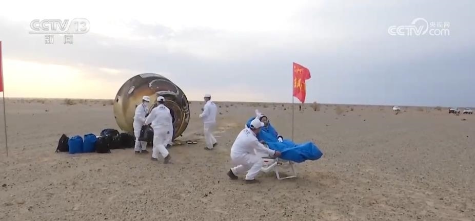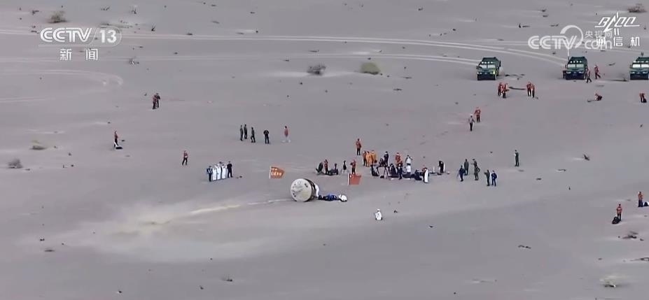 返回艙成功著陸,擔負搜救回收任務的搜救分隊及時發(fā)現(xiàn)目標并抵達著陸現(xiàn)場。