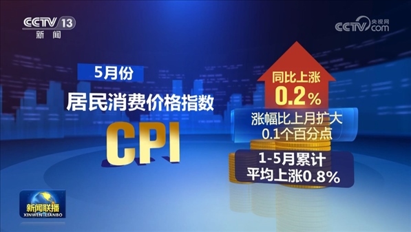 從同比看,5月份,居民消費(fèi)價格指數(shù)CPI同比上漲0.2%,漲幅比上月擴(kuò)大0.1個百分點(diǎn),1—5月累計平均上漲0.8%。