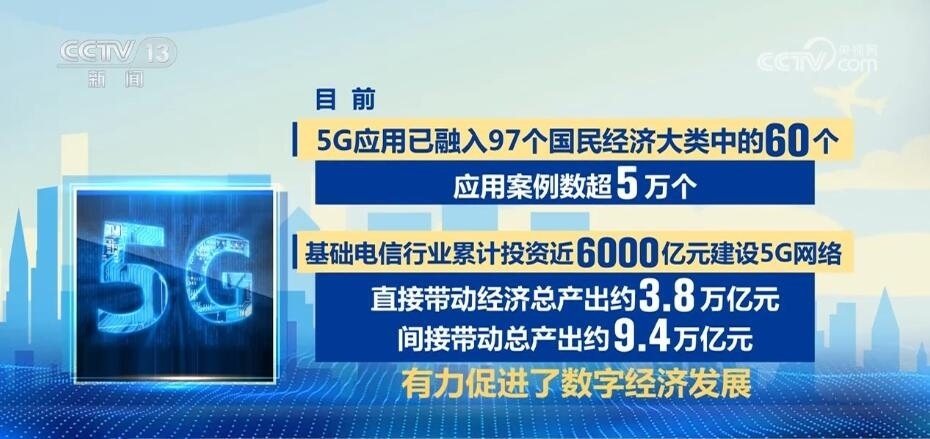 目前,5G應(yīng)用已融入97個國民經(jīng)濟大類中的60個,應(yīng)用案例數(shù)超5萬個?;A(chǔ)電信行業(yè)累計投資近6000億元建設(shè)5G網(wǎng)絡(luò),直接帶動經(jīng)濟總產(chǎn)出約3.8萬億元,間接帶動總產(chǎn)出約9.4萬億元,有力促進了數(shù)字經(jīng)濟發(fā)展。