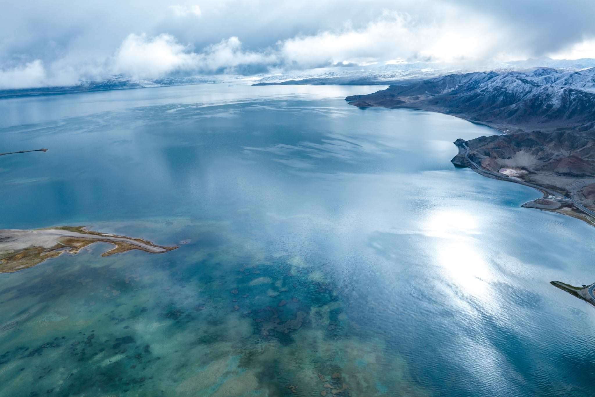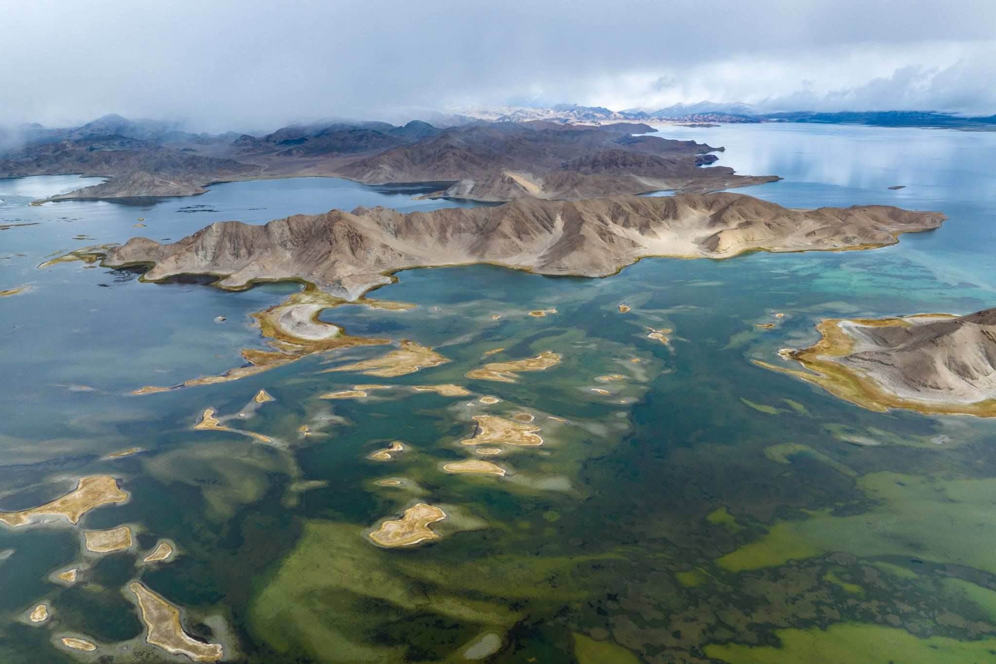 2023年6月6日,西藏阿里,日土縣班公湖,湛藍(lán)的湖水、潔白的雪山、奇特的沿湖景觀,構(gòu)成一幅夏日醉美畫卷。視覺中國(guó)