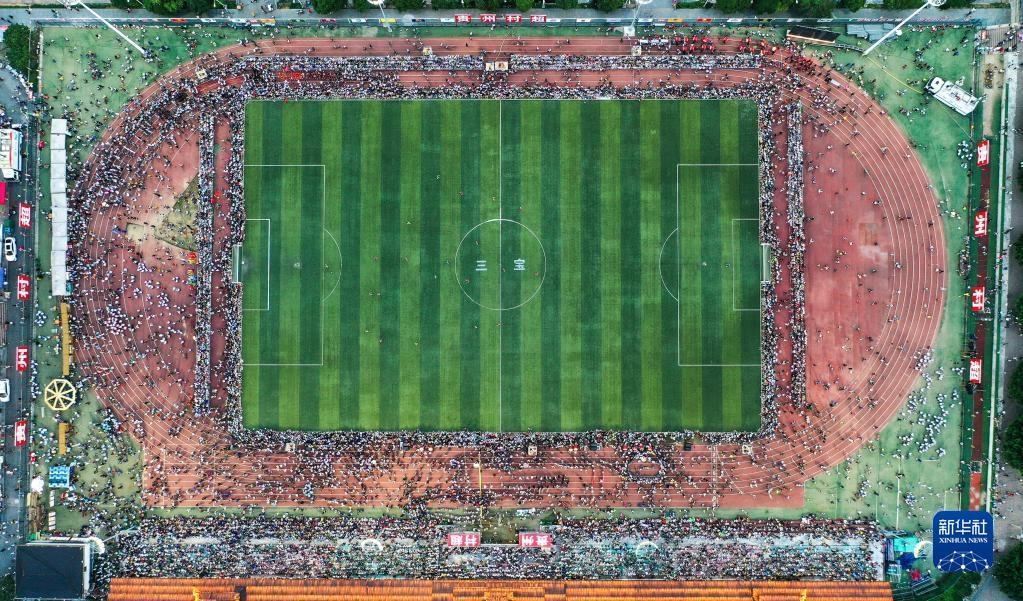 6月10日拍攝的貴州“村超”足球比賽現(xiàn)場(無人機(jī)照片)。   新華社記者 楊文斌 攝