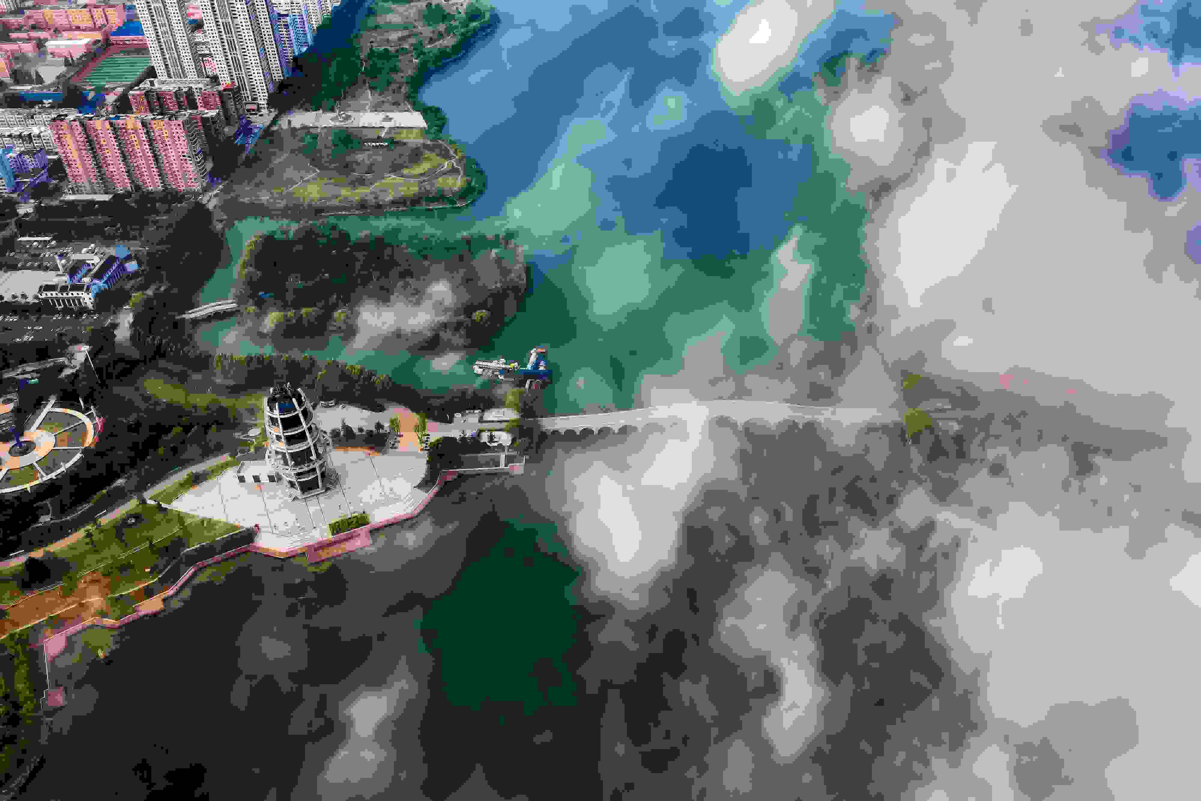 江蘇連云港:城市上空云霧繚繞