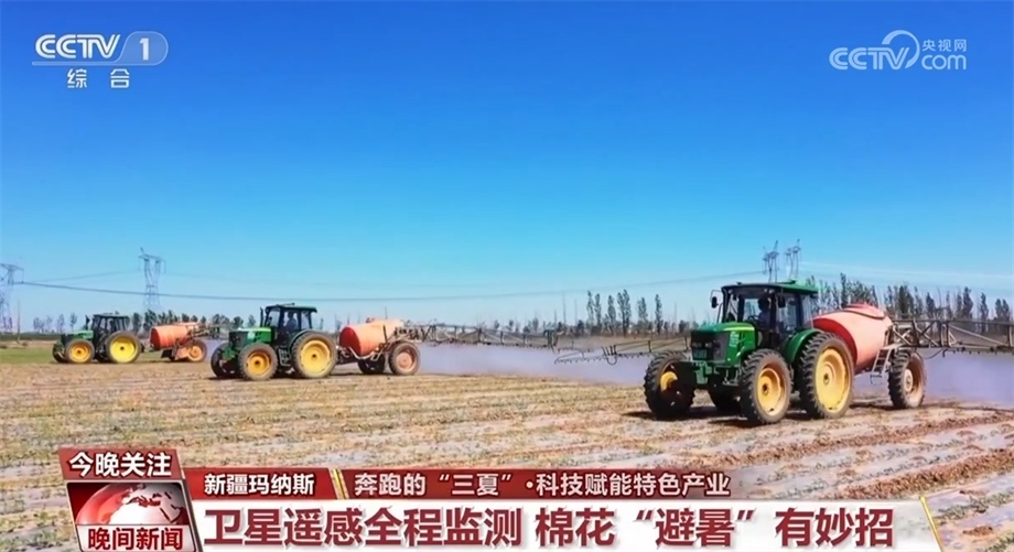 眼下,新疆昌吉瑪納斯縣的棉花正值現(xiàn)蕾期?,F(xiàn)蕾期指的是出現(xiàn)花蕾到開花這一段時間,這個時候棉株生長最快,然而持續(xù)的高溫給田間管理帶來考驗。在瑪納斯縣樂土驛鎮(zhèn)的棉花田里,三臺裝有北斗導(dǎo)航系統(tǒng)的大馬力拖拉機正按照預(yù)先設(shè)定的線路進(jìn)行除草作業(yè)。這是農(nóng)技人員通過衛(wèi)星遙感棉花全程監(jiān)測技術(shù),幫種植戶制定的科學(xué)田管方案。