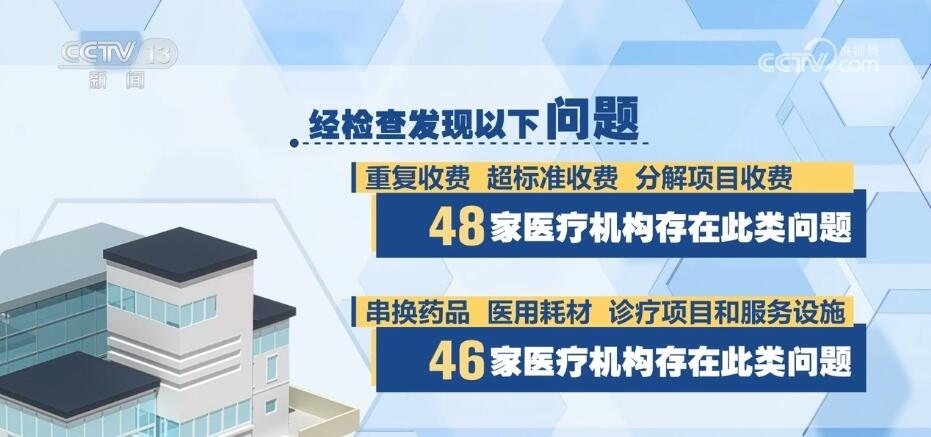 國家飛檢組共抽查了48家定點醫(yī)療機構(gòu),包括三級公立醫(yī)院40家、三級民營醫(yī)院3家、二級以下民營醫(yī)療機構(gòu)5家,經(jīng)檢查發(fā)現(xiàn)以下問題:一、重復(fù)收費、超標(biāo)準(zhǔn)收費、分解項目收費,48家醫(yī)療機構(gòu)存在此類問題。二、串換藥品、醫(yī)用耗材、診療項目和服務(wù)設(shè)施,46家醫(yī)療機構(gòu)存在此類問題。三、將不屬于醫(yī)?;鹬Ц斗秶尼t(yī)藥費用納入醫(yī)保基金結(jié)算,43家醫(yī)療機構(gòu)存在此類問題。四、違反診療規(guī)范過度診療、過度檢查、超量開藥,39家醫(yī)療機構(gòu)存在此類問題。此外,部分醫(yī)療機構(gòu)存在分解住院,藥品、醫(yī)用耗材進銷存不符,未嚴(yán)格執(zhí)行國家組織藥品耗材集中帶量采購政策,按病種付費模式下高靠病組、低標(biāo)準(zhǔn)入院等其他違法違規(guī)問題;一些醫(yī)療機構(gòu)存在虛構(gòu)醫(yī)藥服務(wù)項目問題。