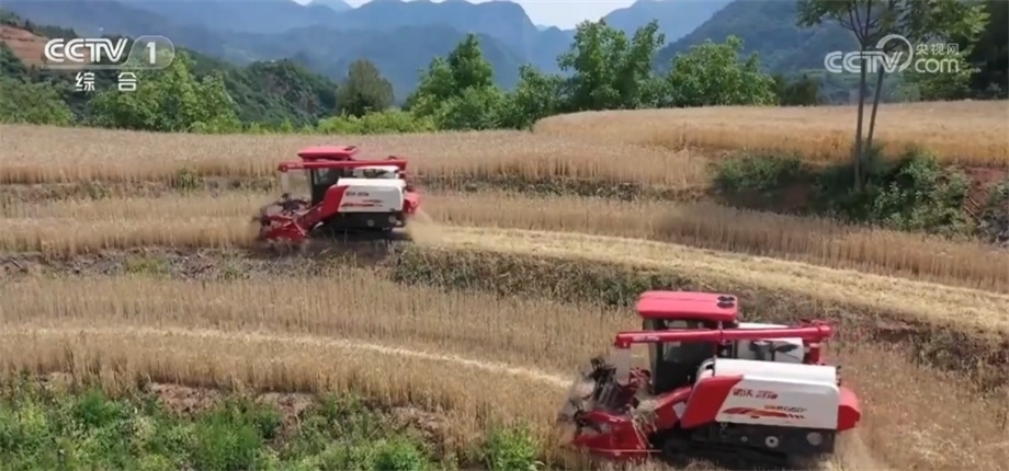 此外,還有更多適應(yīng)性能強(qiáng)的農(nóng)機(jī)裝備開(kāi)進(jìn)了以往機(jī)收率不高的地塊。在甘肅省徽縣,15萬(wàn)畝小麥已陸續(xù)成熟?;湛h地處秦巴山,耕地大多以坡地為主。為了讓小麥顆粒歸倉(cāng),當(dāng)?shù)亟M織體型小、能爬坡過(guò)坎的履帶式聯(lián)合收割機(jī)開(kāi)展機(jī)收作業(yè),機(jī)收率達(dá)到95%以上,打通了農(nóng)機(jī)進(jìn)田“最后一公里”的難題。