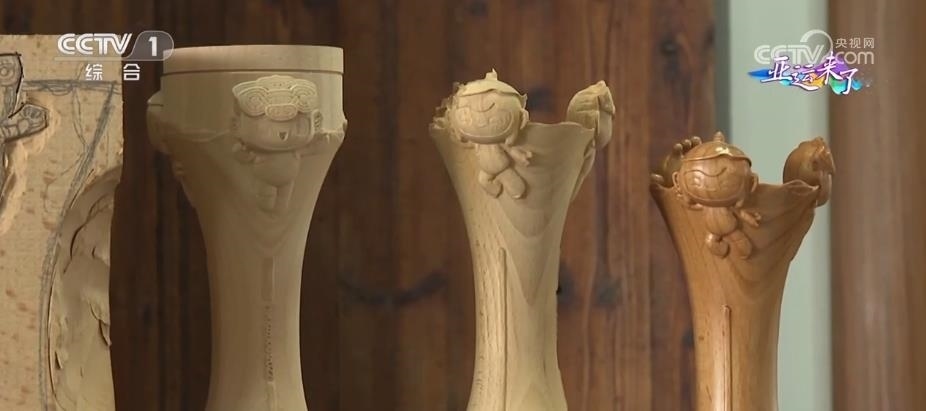 黃小明的建議,最終被亞組委采納。他告訴我們,在頒獎花束中融入花器的設(shè)計,還有一個原因是相較于花材本身,花器材質(zhì)為木頭更便于保存。但整個花器的制作過程工序復(fù)雜,從一塊櫸木的原材料開始,要經(jīng)過12道工序。