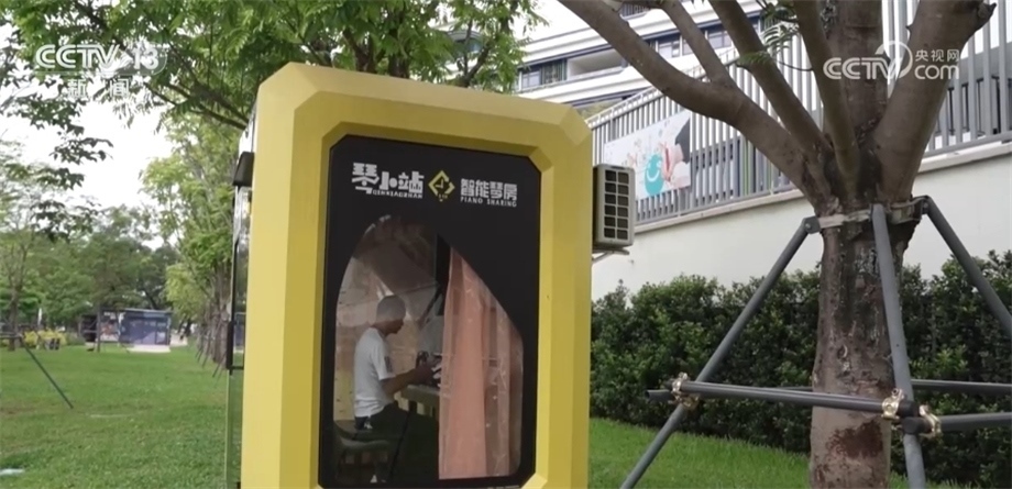 總臺央視記者 喬亞美:在深圳的街頭,我們發(fā)現(xiàn)了一些像我身后這樣的小型智能琴房,我們了解到,像這樣的智能琴房只需要通過小程序或者手機掃碼提前預(yù)約就可以免費使用了,我已經(jīng)提前預(yù)約了這會兒的時間,我們一起去體驗一下。