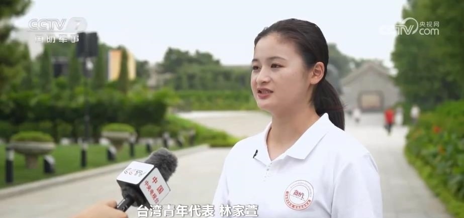臺灣青年代表 林家萱:很感激這些英勇的先烈們,如果沒有他們的統(tǒng)一對外抗戰(zhàn)的話,其實沒有現(xiàn)在我們平安順遂的今天。