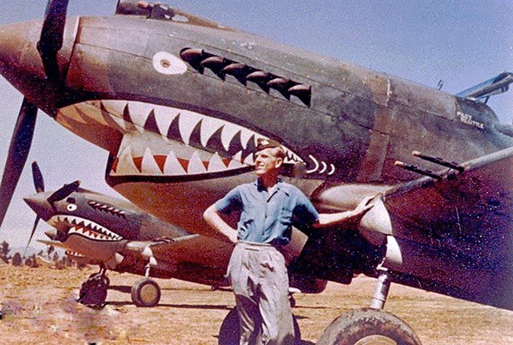 這是在二戰(zhàn)時(shí)期的昆明巫家壩機(jī)場(chǎng),一名飛虎隊(duì)隊(duì)員在涂裝有“鯊魚嘴”標(biāo)志的戰(zhàn)斗機(jī)前留影的資料照片。新華社發(fā)