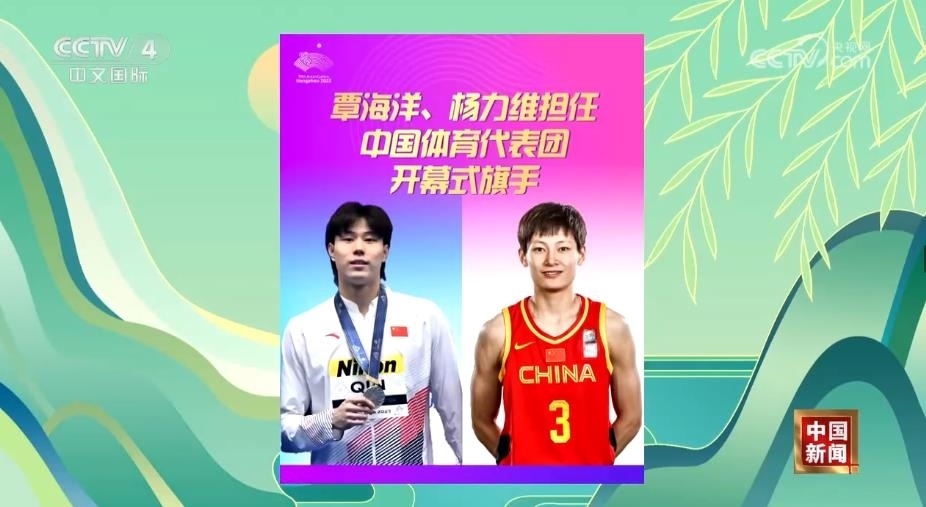 9月22日上午,杭州亞運會中國體育代表團宣布,將由游泳運動員覃海洋和籃球運動員楊力維擔任杭州亞運會開幕式中國體育代表團旗手。楊力維作為中國女籃隊長,2023年與隊友一起贏得了亞洲杯冠軍。覃海洋2023年在世錦賽上收獲4金,其中,包攬了男子蛙泳的3枚金牌,并打破一項世界紀錄。