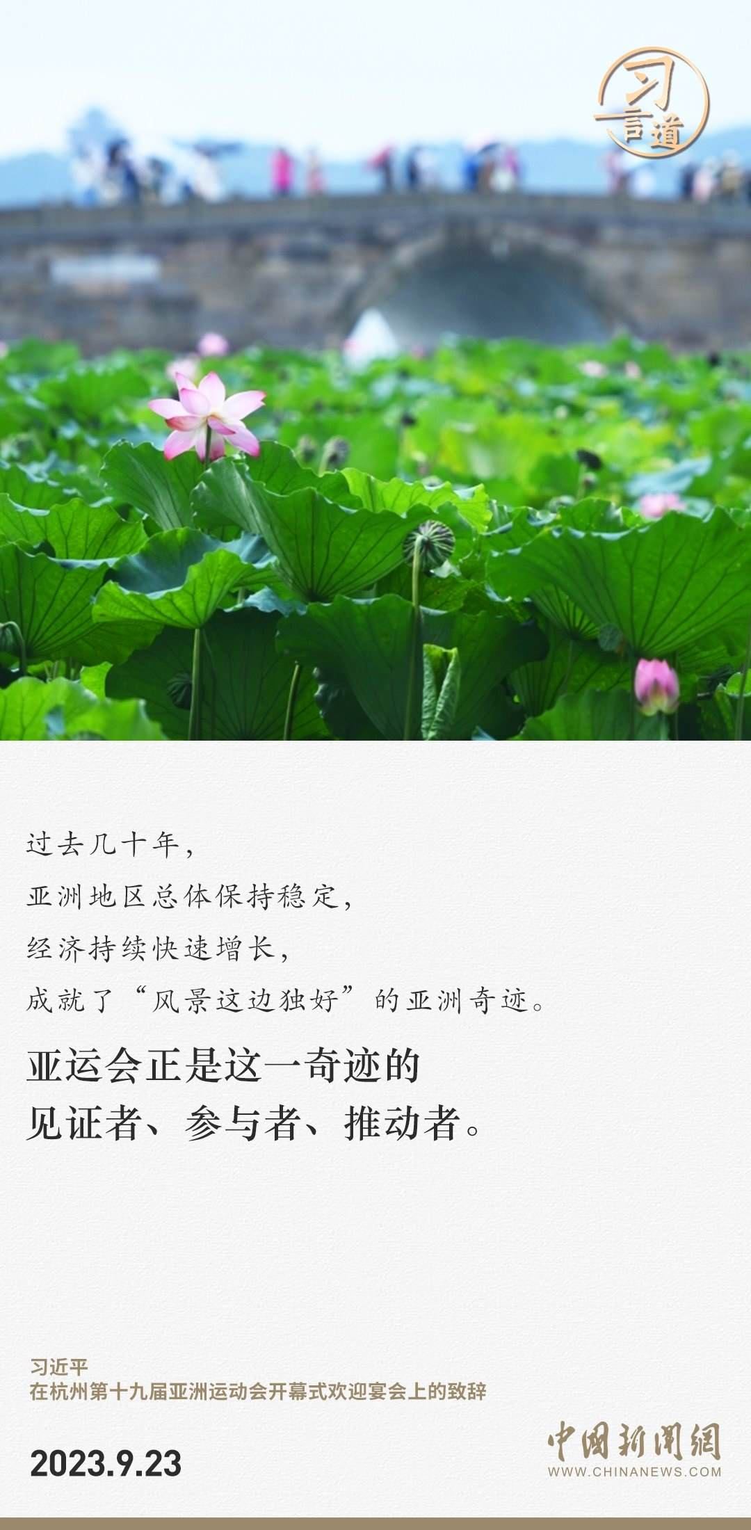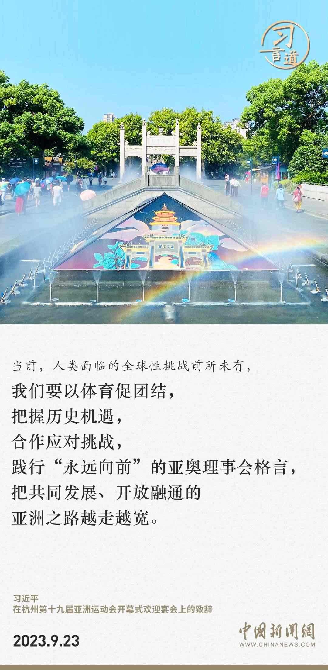 9月23日中午,國家主席習(xí)近平和夫人彭麗媛在浙江省杭州市西子賓館舉行宴會(huì),歡迎來華出席杭州第19屆亞洲運(yùn)動(dòng)會(huì)開幕式的國際貴賓。習(xí)近平發(fā)表致辭指出——