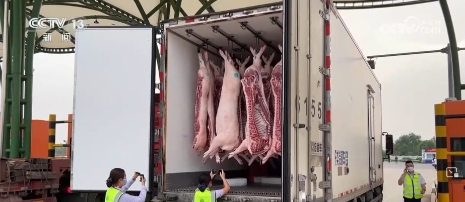 為了保障肉品質(zhì)量,在這家保供基地生豬屠宰后,會馬上進入預(yù)冷車間,預(yù)冷2小時之后再轉(zhuǎn)運到冷鏈車上,運輸全程制冷。另外,當?shù)卣瓦\管部門也同步強化服務(wù),在檢疫、運輸、轉(zhuǎn)運等多個環(huán)節(jié)提供便利。