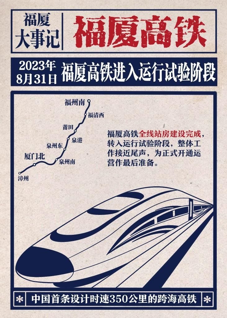 我國首條設(shè)計時速350公里的跨海高鐵——福廈高鐵正式開通運營