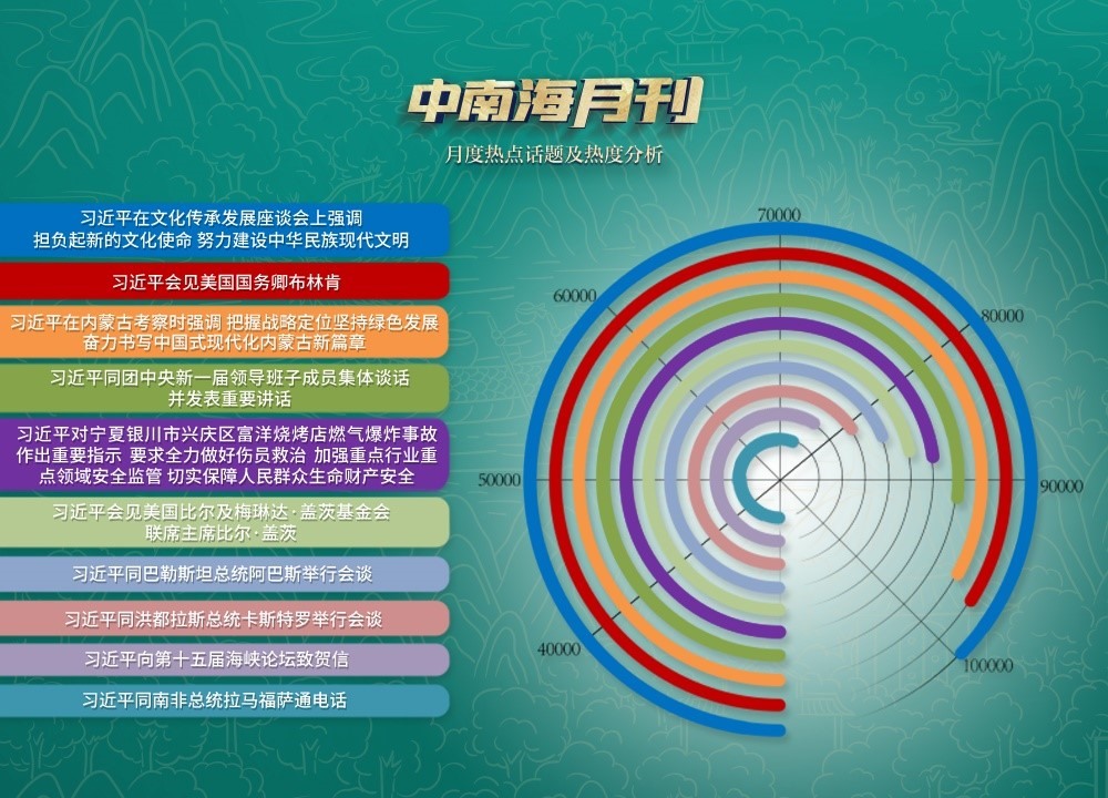 在央視網(wǎng)“智聞”系統(tǒng)提取分析的6月全網(wǎng)時(shí)政新聞熱點(diǎn)中,處處體現(xiàn)著“以古人之規(guī)矩,開(kāi)自己之生面”的生動(dòng)實(shí)踐。