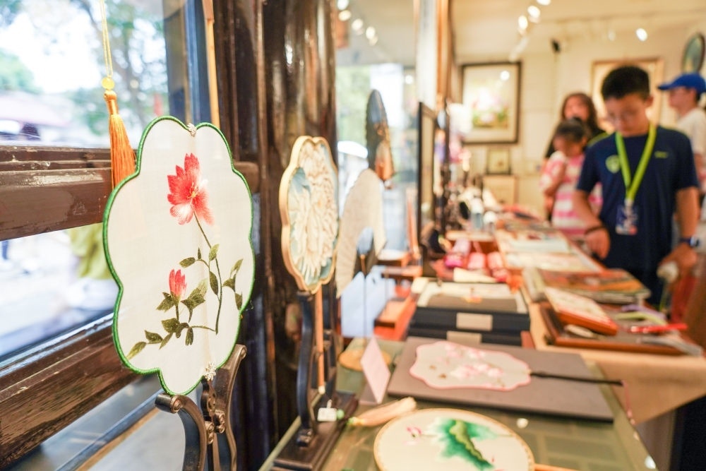 7月6日,游客在平江路一家蘇繡店內(nèi)選購紀(jì)念品。