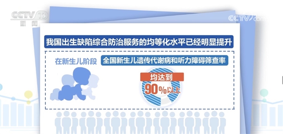 2009年以來,累計為1.3億名農村生育婦女補服葉酸;全國婚檢率從2011年的41.9%提高至2021年的70.9%;全國產(chǎn)前篩查率從2011年的22.7%提高至2021年的85.7%;全國新生兒遺傳代謝病和聽力障礙篩查率均達到90%以上。建立起出生缺陷三級防治體系。
