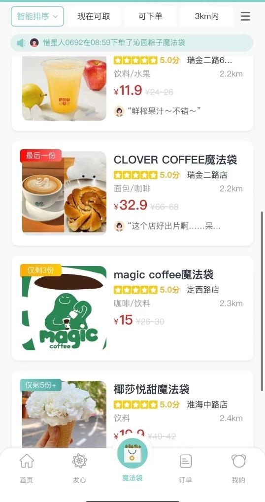 記者在上海登錄一個“盲盒”小程序,看到所在地周邊的部分商戶銷售一批名為“魔法袋”的產(chǎn)品,已經(jīng)吸引多個餐飲品牌加入。平均售價只有十幾元的“食物盲盒”,包含了多個烘焙產(chǎn)品。記者隨機(jī)選購了一款“魔法袋”,到店取貨后看到,售價11.9元的“魔法袋”里有4個蛋撻、2個肉松蛋糕。如果按照原價購買,這些東西應(yīng)該需要20多元。