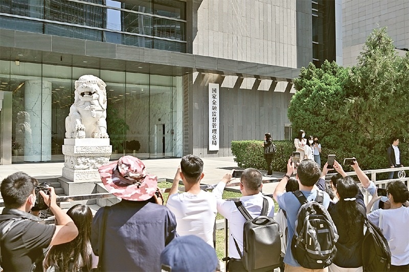 2023年5月18日,國家金融監(jiān)督管理總局正式掛牌,我國金融監(jiān)管機構改革邁出重要一步。圖為當日媒體記者在國家金融監(jiān)督管理總局門前拍攝。 新華社記者 李鑫/攝