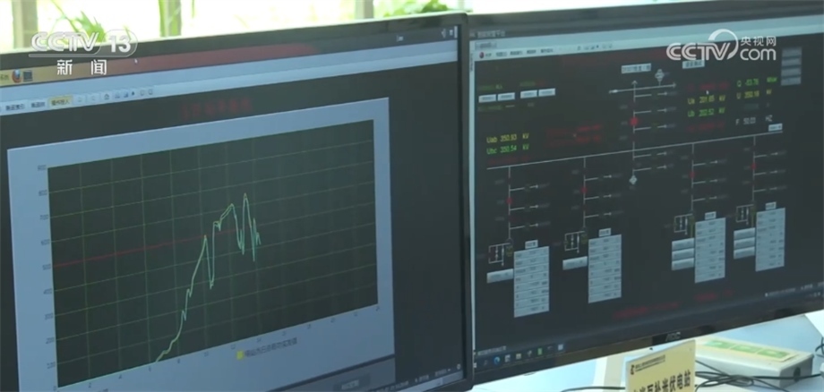 總臺記者 劉澤耕:我們現在來到的是龍羊峽水光互補光伏電站中控室,這塊屏幕上正在變化的數據是光伏電站發(fā)電的實時數據。光伏發(fā)電存在間歇性、波動性和隨機性等問題。在夜間,光伏電站出力為零,遇到陰雨天氣,云層遮擋住太陽,光伏電站發(fā)電能力也會迅速下降。這些因素都會導致光伏發(fā)電產生的電流呈現鋸齒狀,不僅會對電網造成沖擊,而且電壓不穩(wěn)定也會影響生產生活。而龍羊峽水電站水光互補,完美解決了光伏發(fā)電“靠天吃飯”的難題。