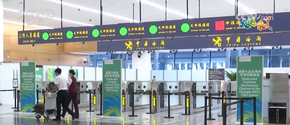 成都海關(guān)所屬雙流機(jī)場海關(guān)旅檢二科科長 李霄林:為了應(yīng)對大運(yùn)會人員集中通關(guān)的情況,我們設(shè)置了6條大運(yùn)會海關(guān)專用通道,并對集成了手提行李機(jī)檢等8項(xiàng)功能的智能通道進(jìn)行了升級,由原來的“單通道”升級為“雙通道”,單人的通關(guān)速度提升了40%。