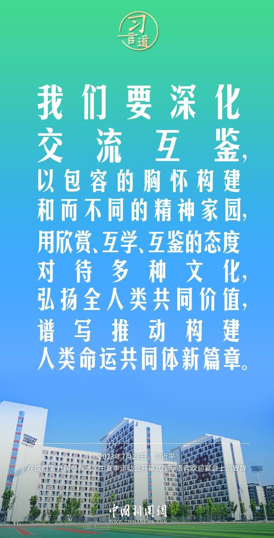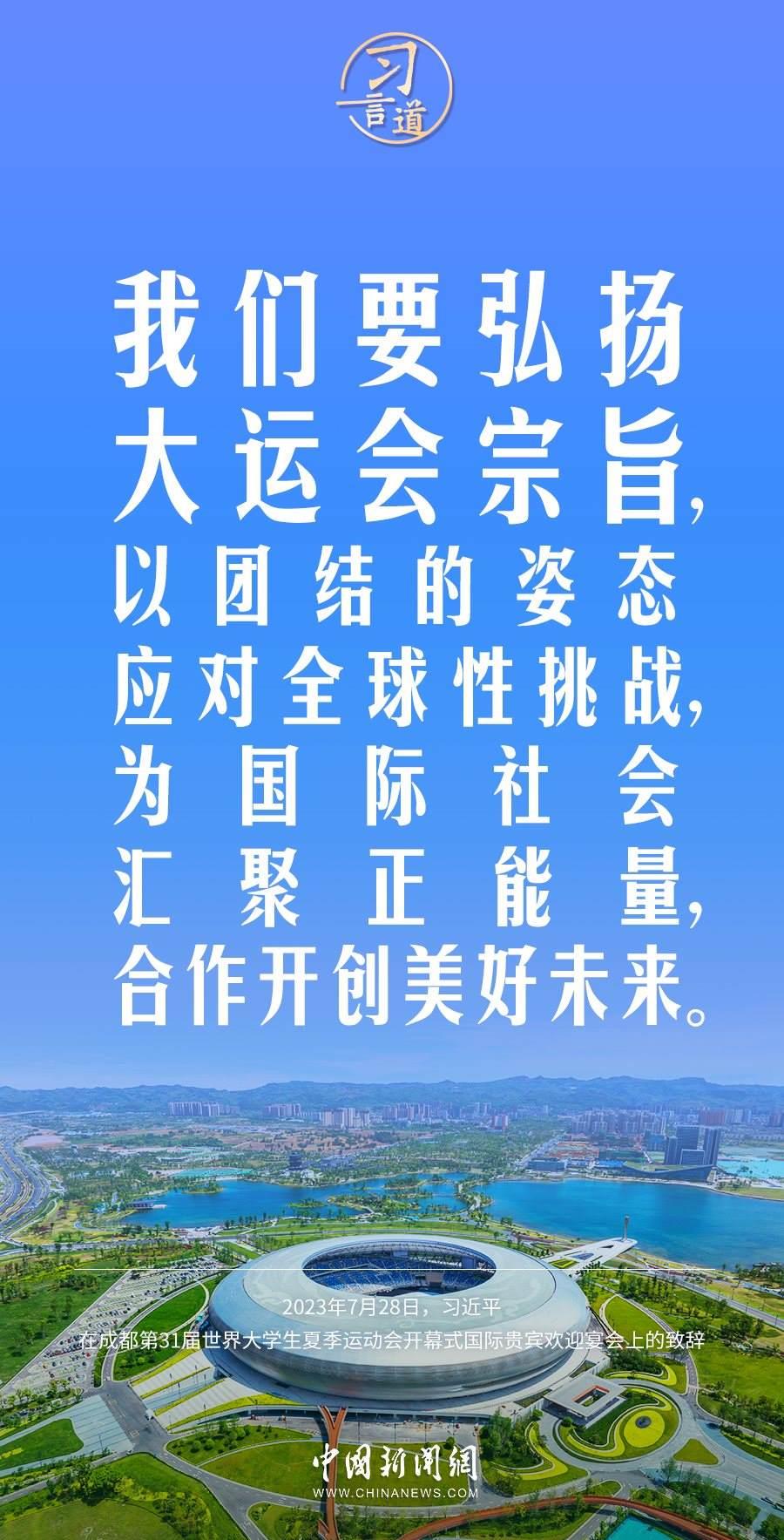 7月28日中午,國(guó)家主席習(xí)近平和夫人彭麗媛在四川省成都市金牛賓館舉行宴會(huì),歡迎出席成都第31屆世界大學(xué)生夏季運(yùn)動(dòng)會(huì)開幕式的國(guó)際貴賓。習(xí)近平發(fā)表致辭稱——