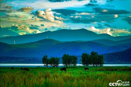 云南麗江,黃昏時分,拉市海風(fēng)光旖旎。