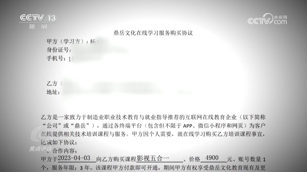 然而,這次鼎岳公司的工作人員也沒再用推薦兼職來安撫他,而是直接拿出了培訓(xùn)合同,上面寫著“自用戶繳費(fèi)兩個(gè)月后,鼎岳將不再為用戶提供退費(fèi)服務(wù)?!笨粗@份自己簽了字的培訓(xùn)合同,小楊意識(shí)到退費(fèi)難了。
