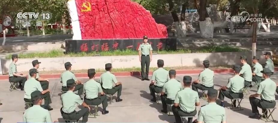 八一建軍節(jié)當(dāng)天,新疆軍區(qū)某紅軍團組織升國旗儀式,官兵們整齊列隊向國旗行軍禮。升旗儀式結(jié)束后,部隊在營區(qū)內(nèi)“黨旗山”下為部分官兵頒發(fā)衛(wèi)國戍邊紀念章,以此表彰他們對維護祖國繁榮作出的貢獻。