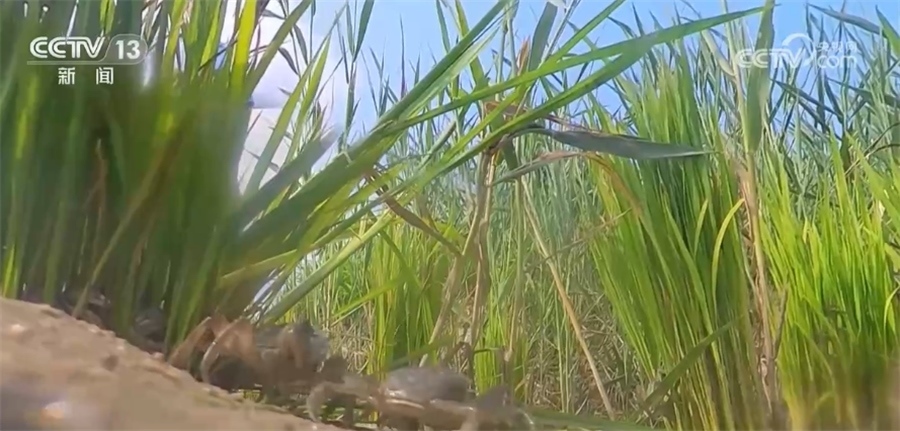 吉林省大安市圣力種植農(nóng)民專業(yè)合作社負(fù)責(zé)人 王千士:現(xiàn)在已經(jīng)脫第二次殼了,還能脫兩次殼,它脫的殼在土壤里一發(fā)酵變成含鈣的肥了,對(duì)土壤的培肥地力很有好處。另外,小蟹子在里邊爬行的過程中算是平地了,還能吃蟲吃草,對(duì)水稻和黑土地的改良很有好處。
