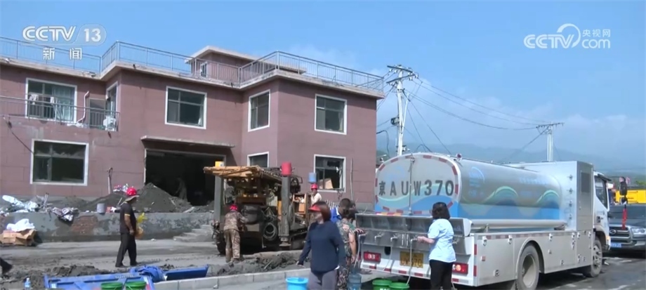 在北京市房山區(qū)西班各莊村,由于洪水侵襲,當(dāng)?shù)厮淳粵_毀,230戶村民出現(xiàn)飲水困難。當(dāng)?shù)厮块T(mén)立即派出應(yīng)急送水車(chē),同時(shí)集結(jié)勘探隊(duì)、機(jī)械設(shè)備,用最快的速度更新水源。?