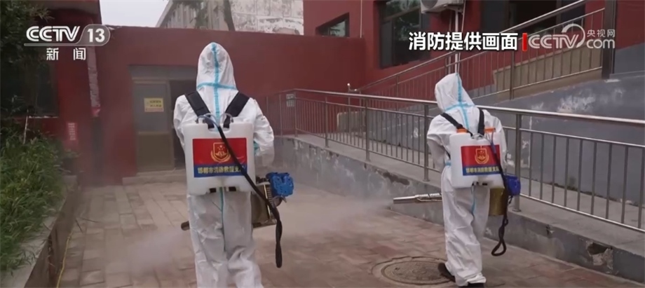 央視網(wǎng)消息:在河北涿州,消防員在多個(gè)小區(qū)、老年公寓等持續(xù)開(kāi)展清淤排水消殺工作。