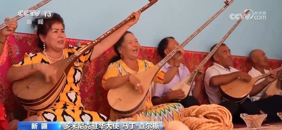 駐華使節(jié)們走進(jìn)喀什古城的街市巷陌,感受當(dāng)?shù)鬲?dú)特的民族文化;在克孜爾千佛洞,領(lǐng)略跨越千年的石窟藝術(shù);來(lái)到新疆民間手工樂(lè)器制作第一村庫(kù)車市新和縣加依村,同當(dāng)?shù)匕傩找黄疠d歌載舞;觀看非遺項(xiàng)目十二木卡姆等一系列活動(dòng),讓使節(jié)們感嘆,新疆少數(shù)民族傳統(tǒng)文化和生活習(xí)俗得到了充分保護(hù)。