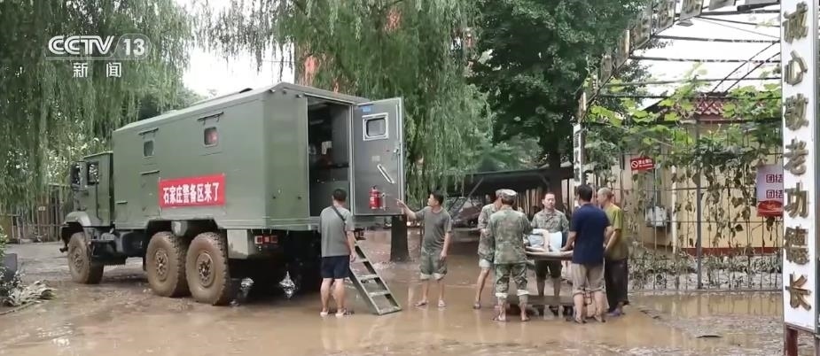 石家莊警備區(qū)動用野戰(zhàn)炊事車等特種裝備,前往涿州市光榮院和涿州市中心敬老院解決150多名老人的飲食問題。同時(shí),他們還將常用藥品等生活物資送到老人手中。