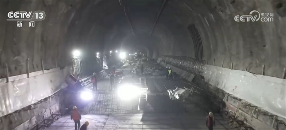 總臺記者 茍順庭:在我身后就是全長12.7公里的貴南高鐵朝陽隧道。因為隧道所在的山體存在有大量的巖溶地質(zhì)點,地下暗河、溶洞溶腔交錯縱橫、環(huán)境復雜,所以這個朝陽隧道是整條線路上風險系數(shù)最高的控制性工程。穿過朝陽隧道后,就到了貴南高鐵貴州段的最后一站——荔波站。