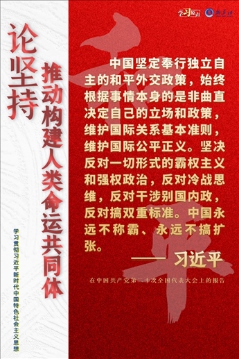 當(dāng)前,世界之變、時(shí)代之變、歷史之變正以前所未有的方式展開(kāi)。人類社會(huì)面臨前所未有的挑戰(zhàn)。世界又一次站在歷史的十字路口,何去何從取決于各國(guó)人民的抉擇。中國(guó)始終堅(jiān)持維護(hù)世界和平、促進(jìn)共同發(fā)展的外交政策宗旨,致力于推動(dòng)構(gòu)建人類命運(yùn)共同體。
